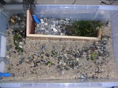 写真をクリックして拡大して見てください.白と黒のシマシマがホタルの幼虫です |