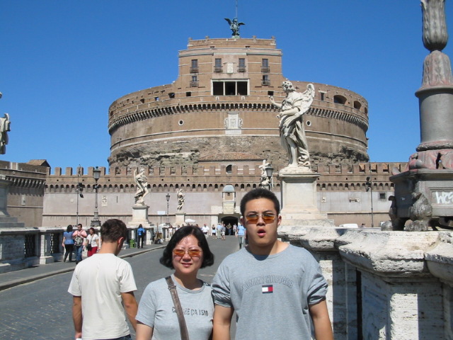 ハドリアヌス帝が建て、その後度々改造され、城だけでなく牢獄としても使用された。名前は、6世紀に伝染病が流行った際に、この城の前に天使が現われ、伝染病を追い払ったとの伝説に由来する。現在は、軍事博物館となっている。(Angelo城建立以来多次改造、也作過牢房。在6世紀傳染病流行之際、在城前出現了天使、把傳染病ー走了、因此得名。現在是軍事博物館。)
