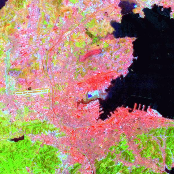 中国大連市の遠赤外線カラー合成画像です。